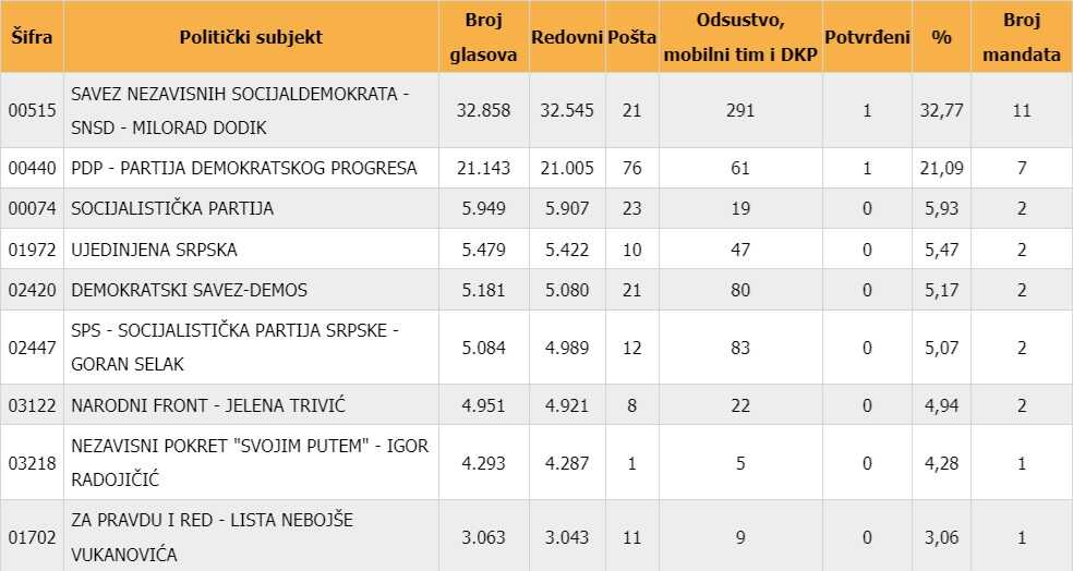 Trenutna raspodjela u Skupštini grada pokazuje kompleksnost situacije. Za većinu je potrebno 16 glasova od ukupno 31 odbornika. SNSD ima 11 odbornika, PDP 7, dok ostale stranke imaju po dva ili jednog odbornika. Sve opcije ostaju otvorene, ali politička situacija ostaje napeta i neizvjesna.