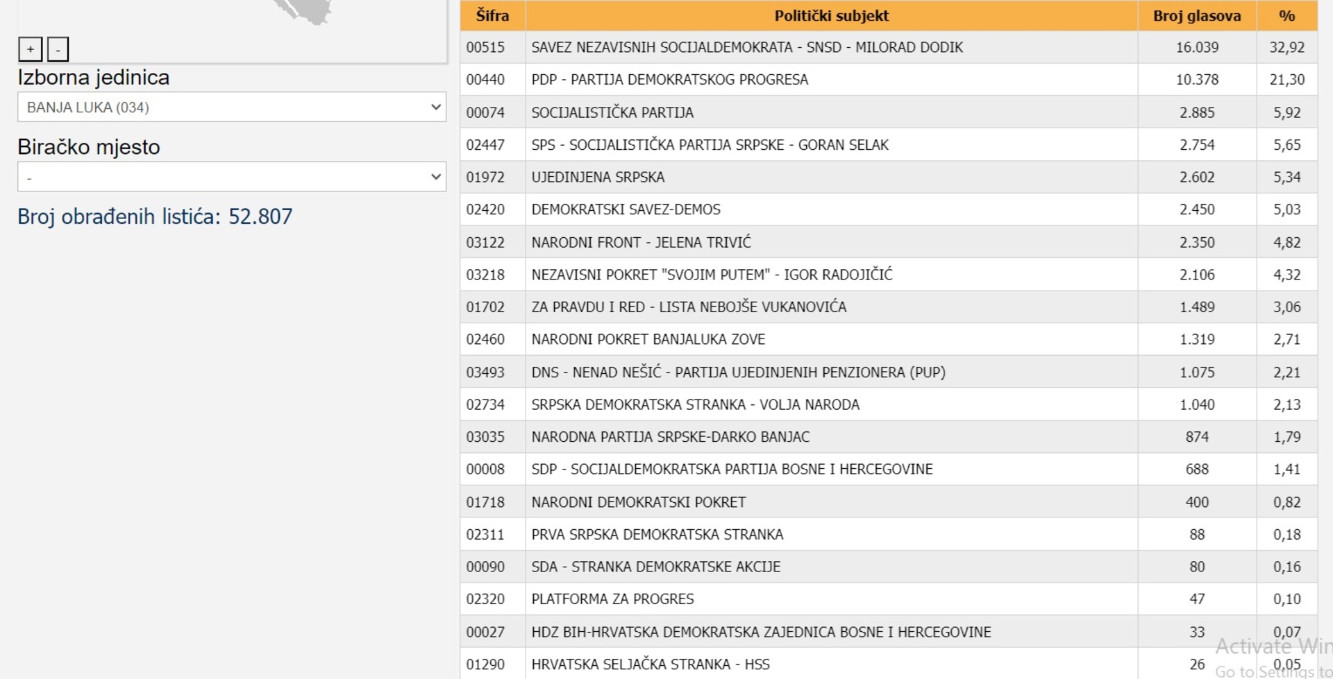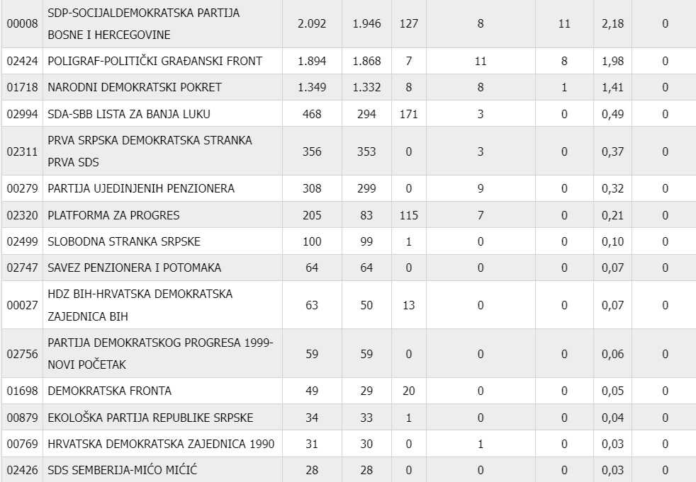 Iako su neki čelnici Socijaldemokratske partije Bosne i Hercegovine, a posebno se tu ističe Vojin Mijatović, "talambasali" o "velikom uspjehu" i "rastu" SDP-a, ova partija daleko je ispod cenzusa.