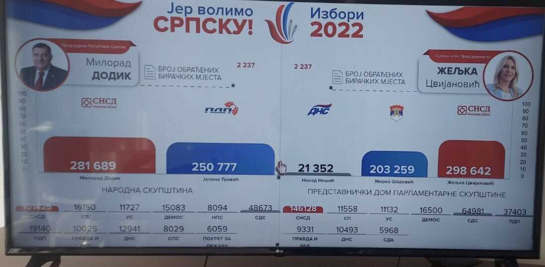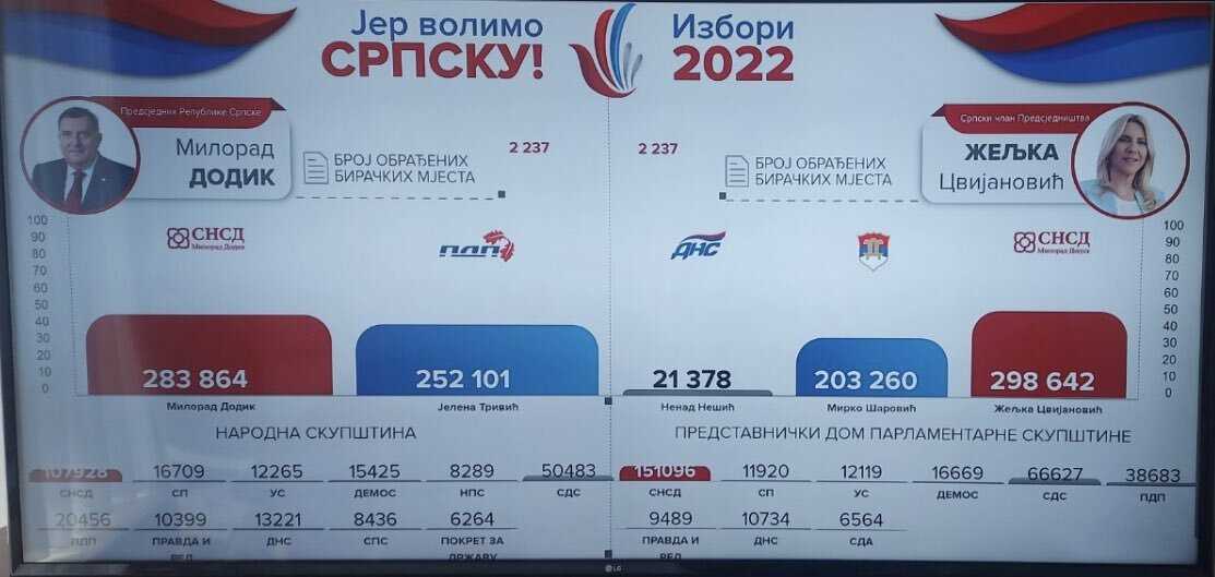PDP je sinoć proglasio izbornu pobjedu tvrdeći da kandidatkinja udružene opozicije Jelena Trivić vodi ispred Milorada Dodika i da je ta razlika od skoro 30.000 glasova "nedostižna".