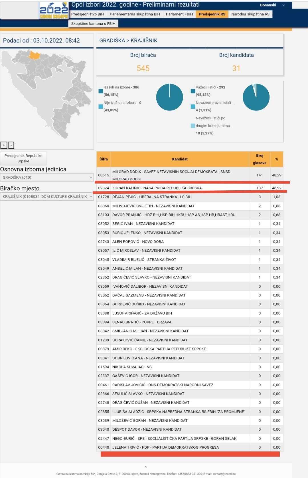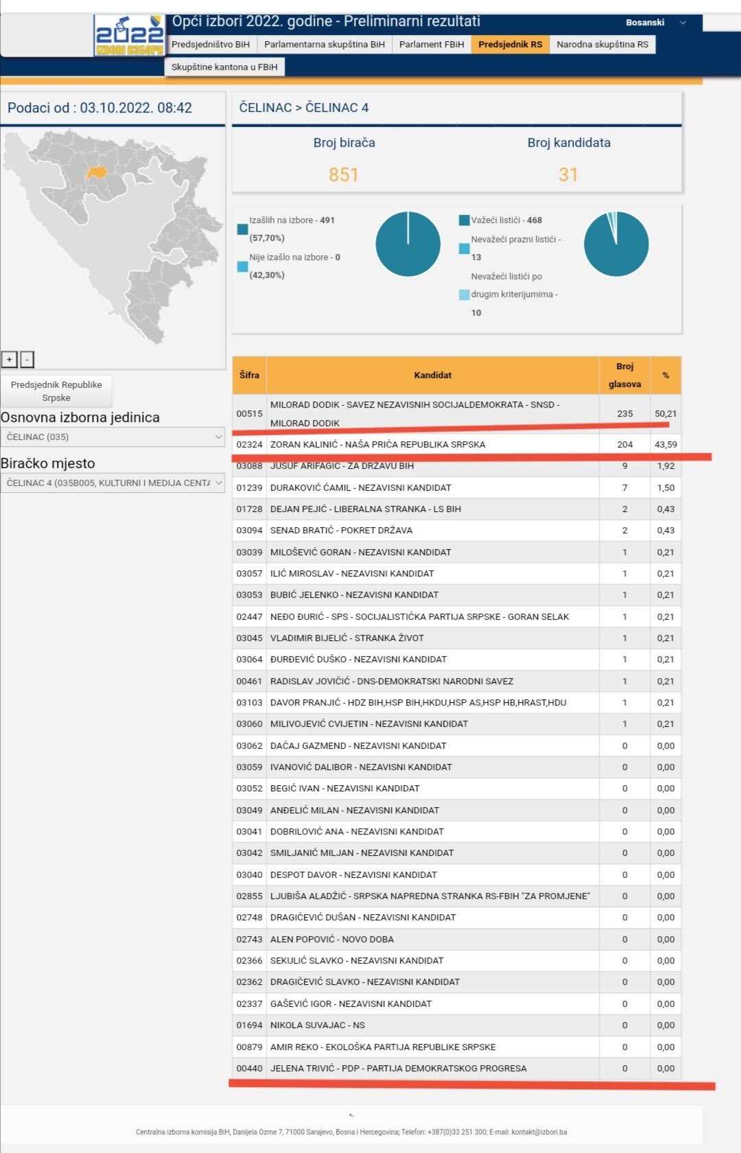Ranije je nešto iza 10 sati jutros Dodik objavio rezultate SNSD-a po kojima ima 31.000, a nešto više od sat vremena kasnije novim postom "potvrdio" tu prednost.