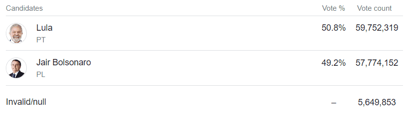 U dramatičnom drugom krugu, on je pobijedio dosadašnjeg predsjednika te najmnogoljudnije države Latinske Amerike Jaira Bolsonara.