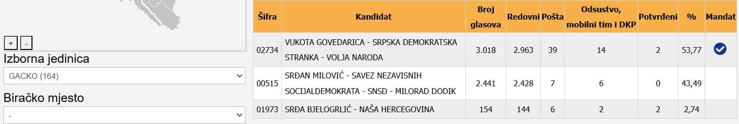 U utrci za načelnika u tom malom, siromašnom hercegovačkom mjestu pobijedio je Vukota Govedarica iz SDS-a. On je bio predsjednik ove stranke prije nekoliko godina.