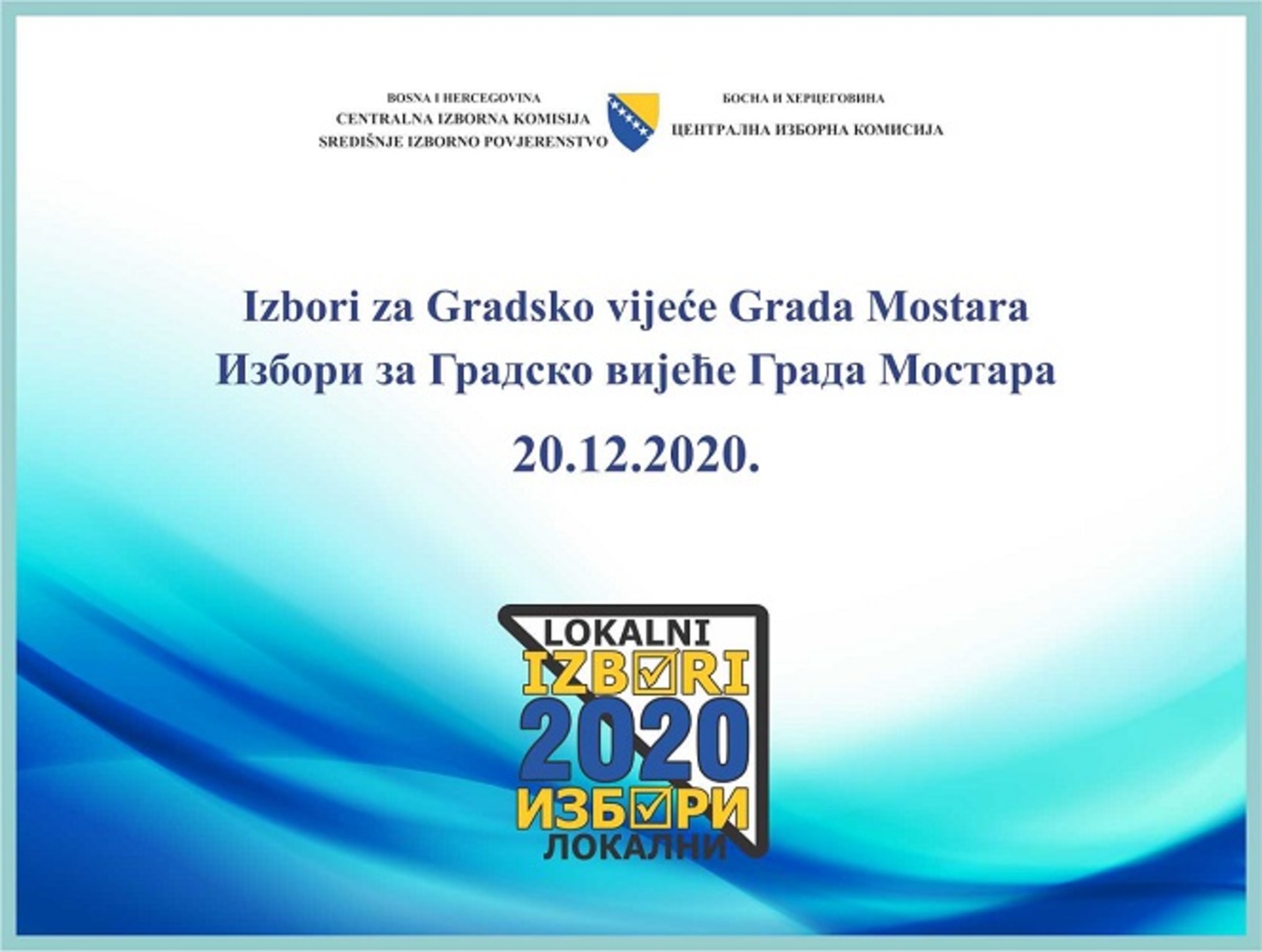 U cilju potpunog informiranja javnosti i svih učesnika u izbornom procesu koji se odnosi na izbore za Gradsko vijeće Grada Mostara održane u nedjelju, 20.12.2020. godine Centralna izborna komisija BiH saopćava sljedeće: