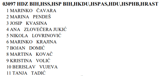 U njoj, Marinko Čavara je na čelu liste HDZ-a i pratećih satelita.