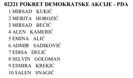 Još jedna "novina" je da se "bivši" predsjednik i osnivač Pokreta demokratske aktivnosti (PDA) Mirsad Kukić predvodnik državne liste za izbornu jedinicu 5A koja pokriva Tuzlanski i Posavski kanton.