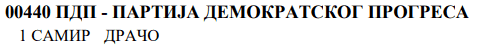 Samir Dračo je na listi ove partije za izbornu jedinicu 4A za državni parlament.