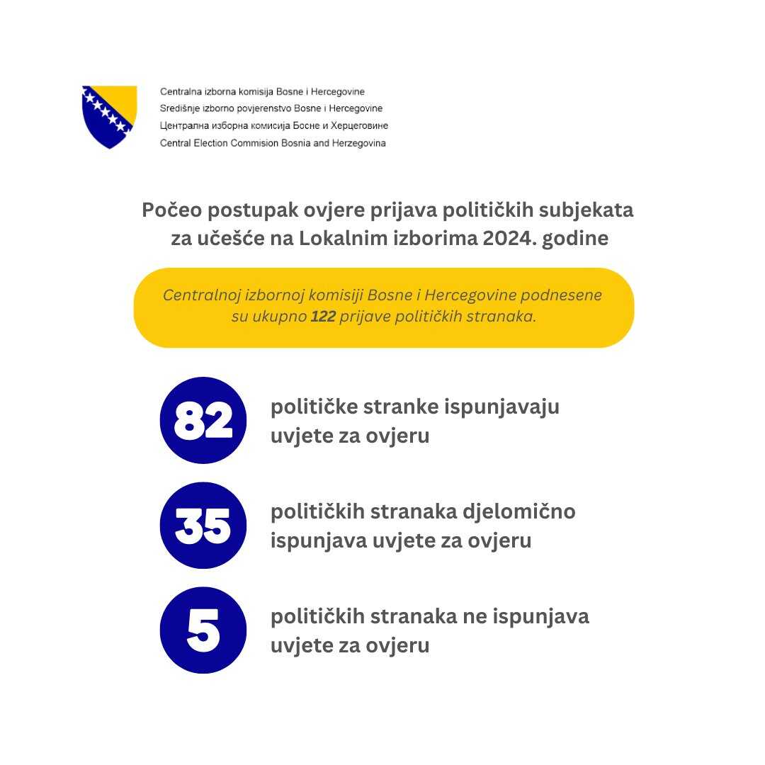 Uz njih, prijave Centralnoj izbornoj komisiji podnijele su i 122 stranke širom Bosne i Hercegovine!
