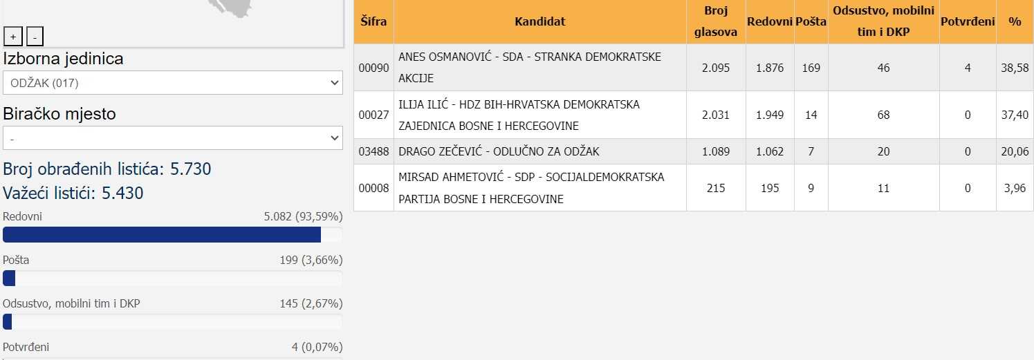 Hadžić je, nakon okončanog glasanja 6. oktobra, bio ispred Zovke za 330 glasova.