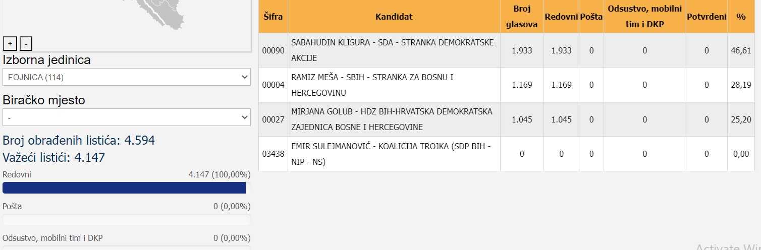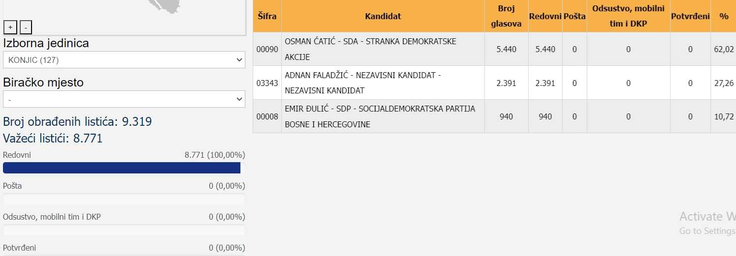 * Konjic- 11.797 birača glasalo ili 54,26 %.