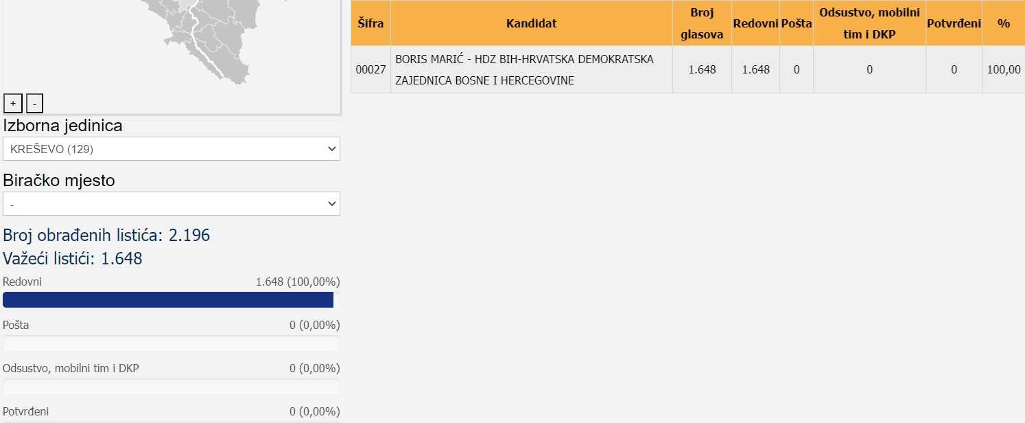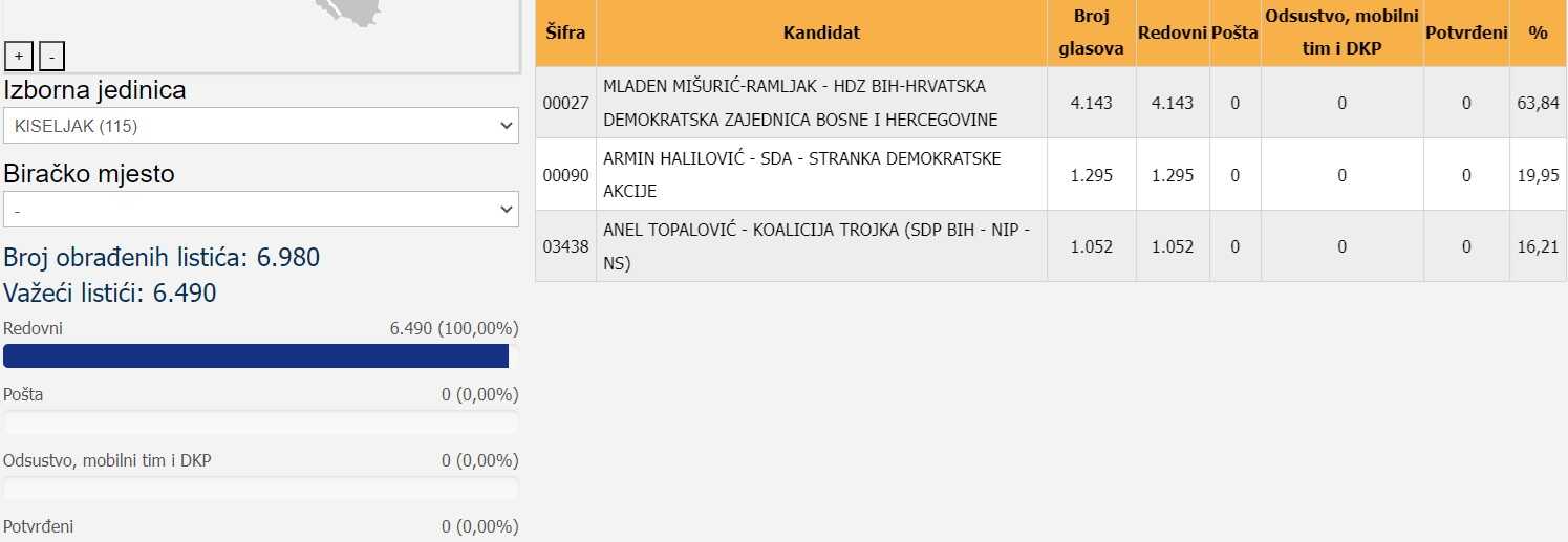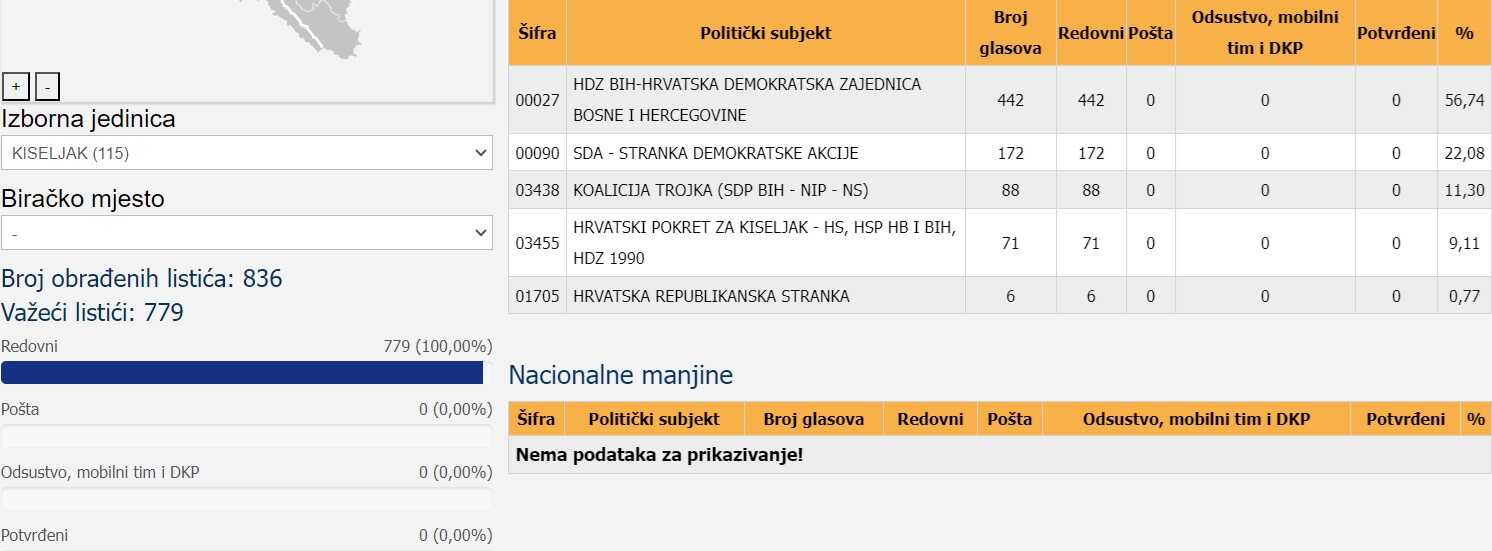 * Kiseljak- 8.077 birača glasalo ili 45,98 %;