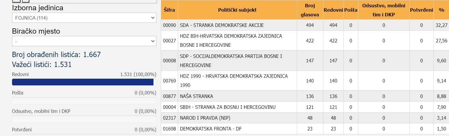 * Fojnica- 5.333 birača glasalo ili 51,81 %;
