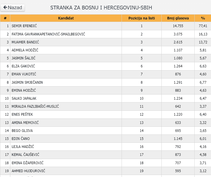 Na listi te partije Sebija Izetbegović osvojila je 10.354 glasa ili 37, 05 posto.