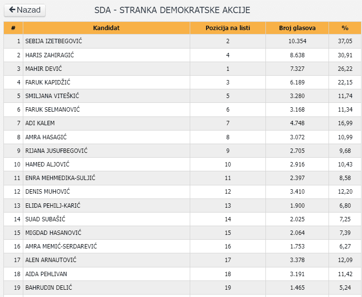 SDA je dobila 27.945 glasova, odnosno 18,79 posto.