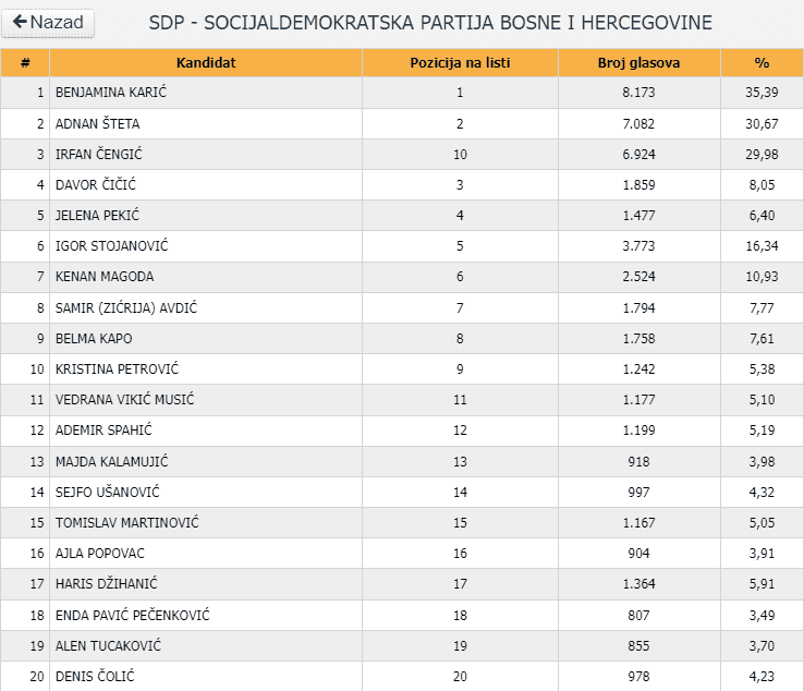 Benjamina Karić je dobila najviše glasova - 8.173 ili 35,39 posto liste SDP-a.