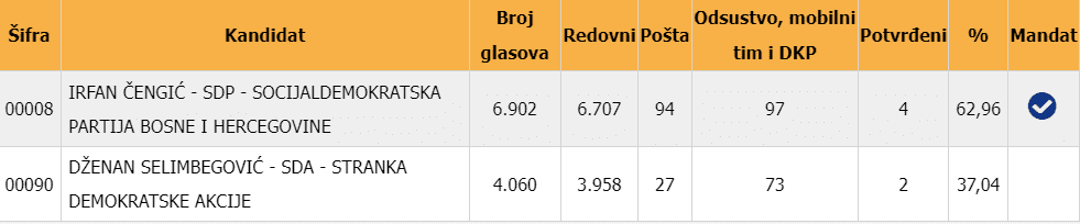 Nakon što su se stekli zakonski uslovi, Centralna izborna komisija Bosne i Hercegovine je danas na 72. sjednici donijela odluku kojom su potvrđeni rezultati prijevremenih izbora za načelnika Općine Stari Grad Sarajevo, održanih 29.10.2023. godine.