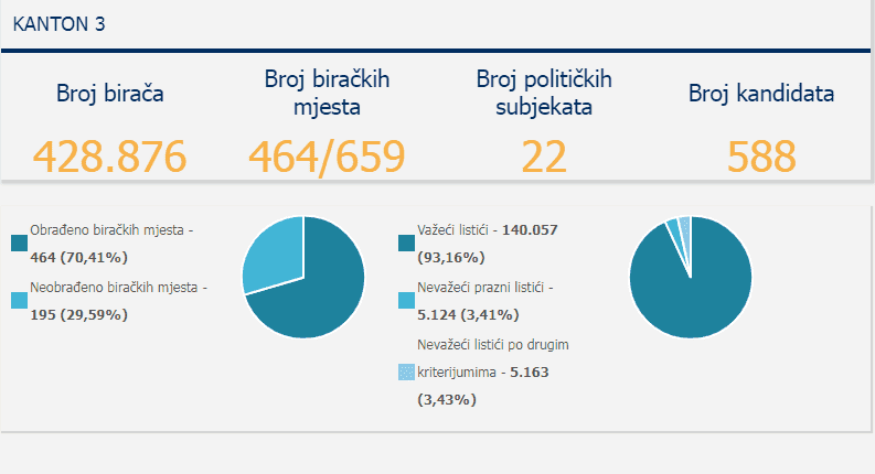 Obrađeno je 70,41 % biračkih mjesta.