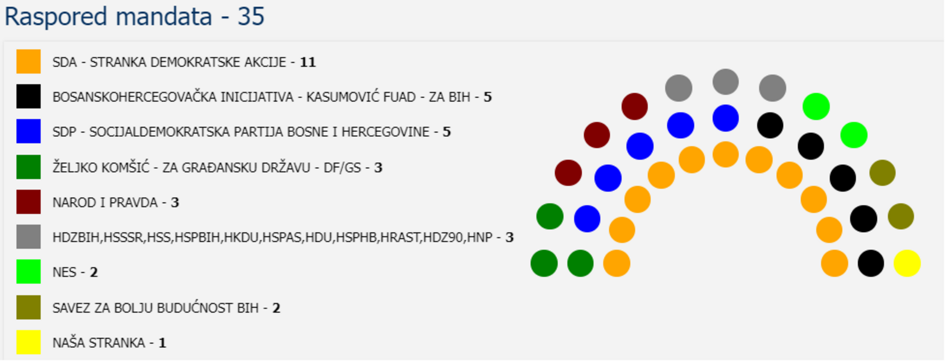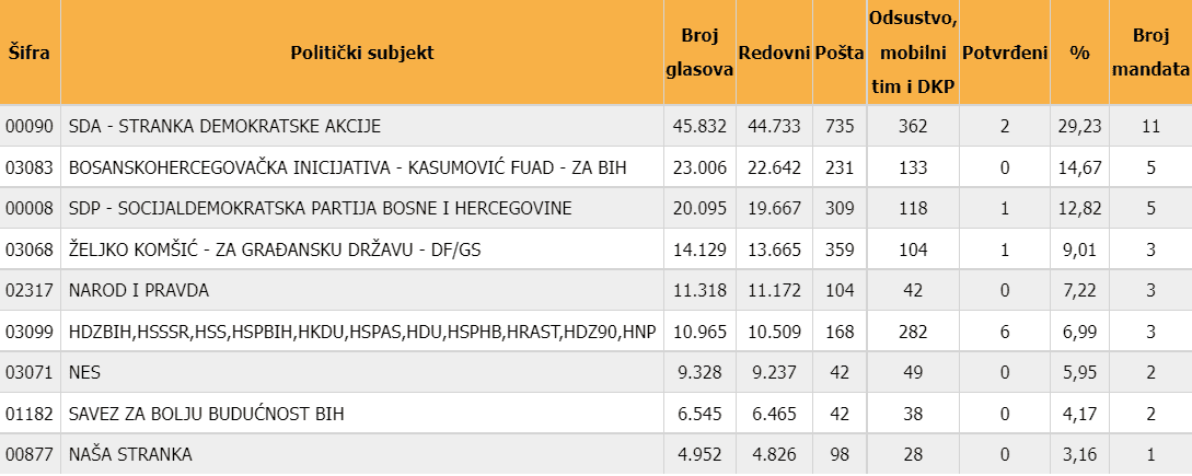 Najviše, njih 11 ima SDA, a slijede SDP i BHI KF sa po 5.