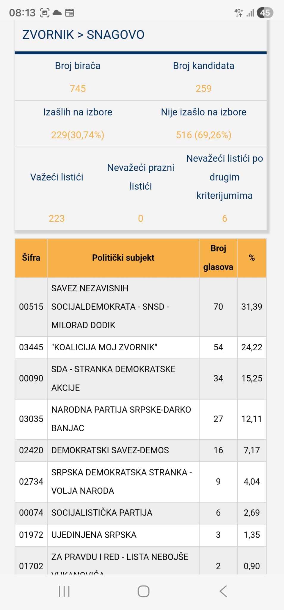 I baš u Snagovu SNSD nije imao tako ubjedljivu podršku kao u nekim drugim mjesnim zajednicama Zvornika.