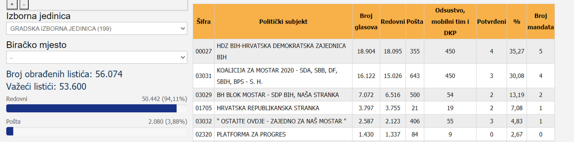 mandata Koaliciji za Mostar. Novi vijećnici GV Mostar iz tog područja su Ibro