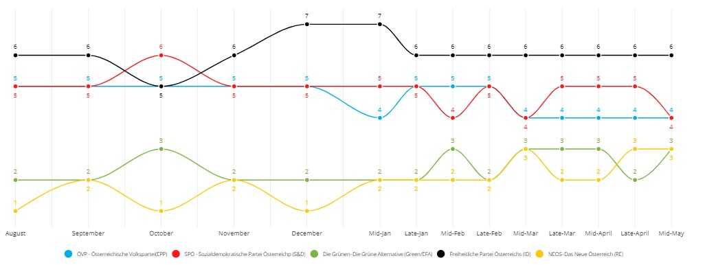 Prate ih Narodnjaci (OVP) i socijaldemokrate (SPO). Dva bloka stranaka zelenih zajedno bi mogli dobiti čak 6 zastupnika.