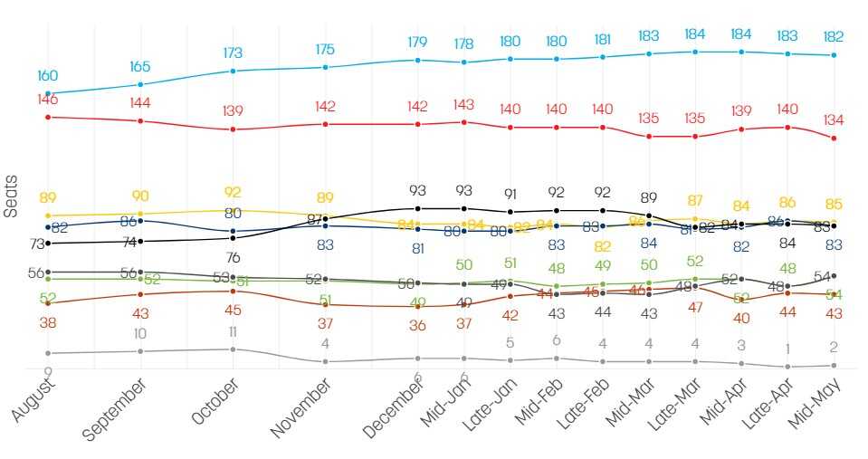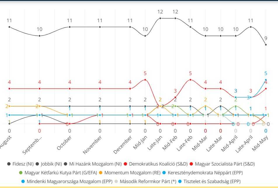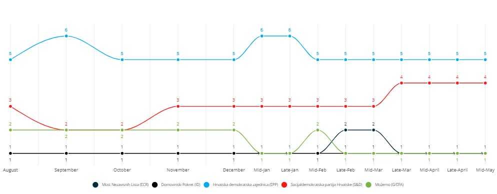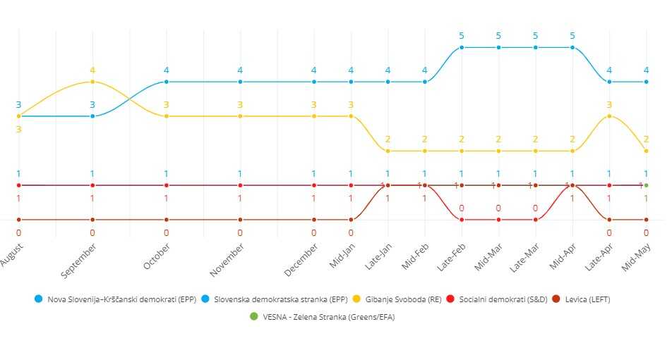 Evropska narodna stranka bilježi trend rasta od augusta prošle godine do 12. maja, kada je rađeno zadnje istraživanje.