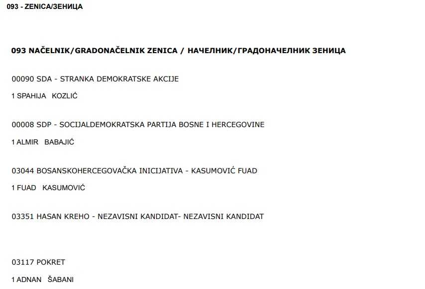 ACentralna izborna komisija verificirala je kandidature ukupno pet kandidata za gradonačelnika Zenice.