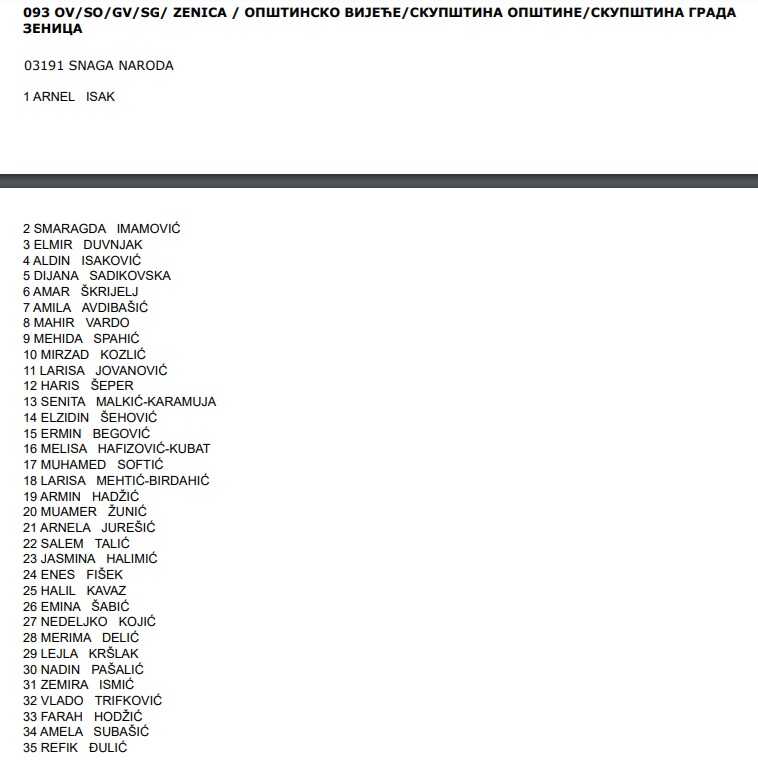 Federalni zastupnik Arnel Isak predvodi kandidatsku listu Snage naroda za Gradsko vijeće Zenica. Nije jasno da li će, ako prođe u GV, vratiti zastupnički mandat. Ako to učini, Narodni evropski savez dobit će nazad zastupničko mjesto, obzirom da je Arnel Isak izabran sa liste te stranke u Federalni parlament. Teško je očekivati da bi Isak napravio takav potez, te je čelna pozicija na listi za Gradsko vijeće, jednostavno, obmana birača!