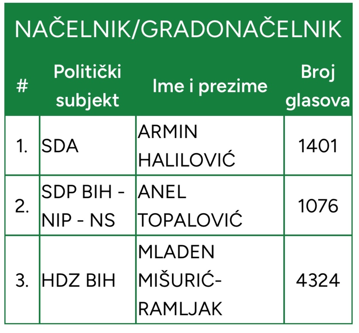 Kandidati Armin Halilović iz SDA i Anel Topalović iz Trojke nisu mu ni blizu. Prvi je dobio 1.401, a drugi 1.076 glasova.