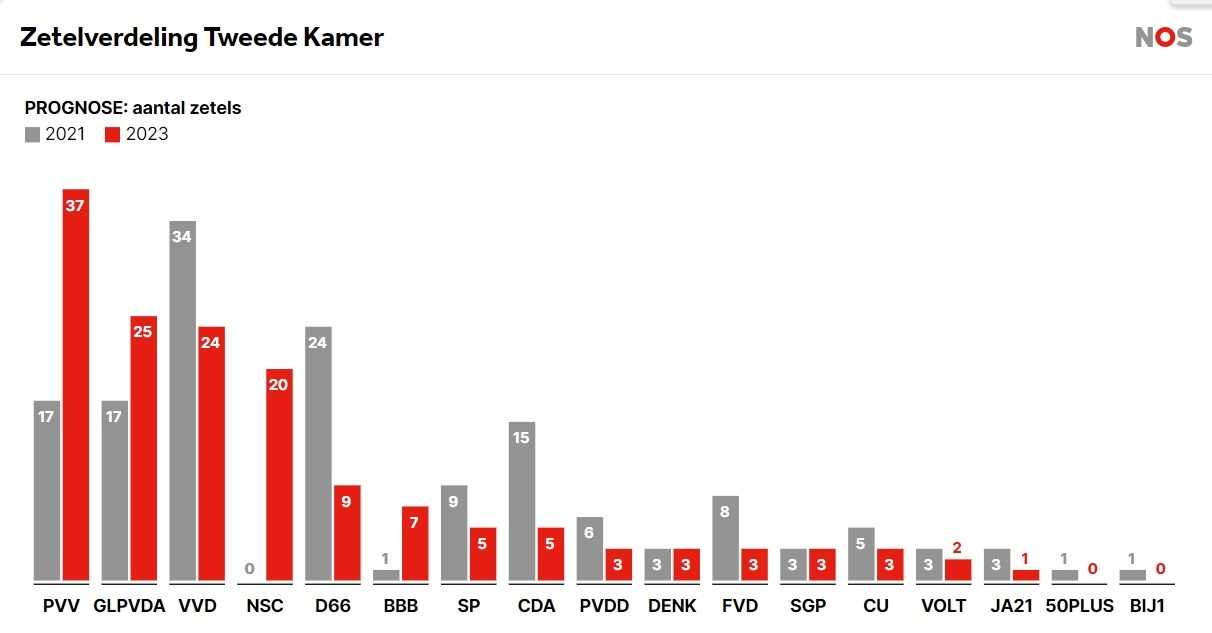 Nakon izbora u srijedu, 22. novembra, PVV ekstremno desnog antiislamistički nastrojenog Geerda Wildersa osvojila je najviše mjesta, čak 37!