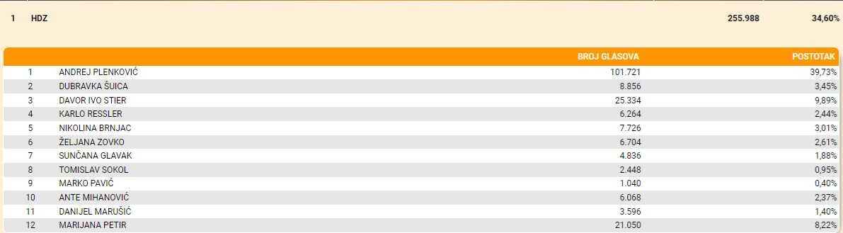 Prema DIP-u , mandate su osvojili Karlo Ressler, Željana Zovko Nikolina Brnjac, Dubravka Šuica, Davor Ivo Stier i Andrej Plenković.