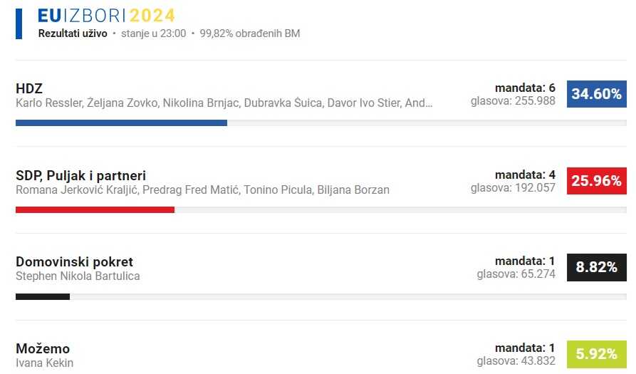 Državna izborna komisija (DIP) Hrvatske objavila je rezultate izbora za Evropski parlament.