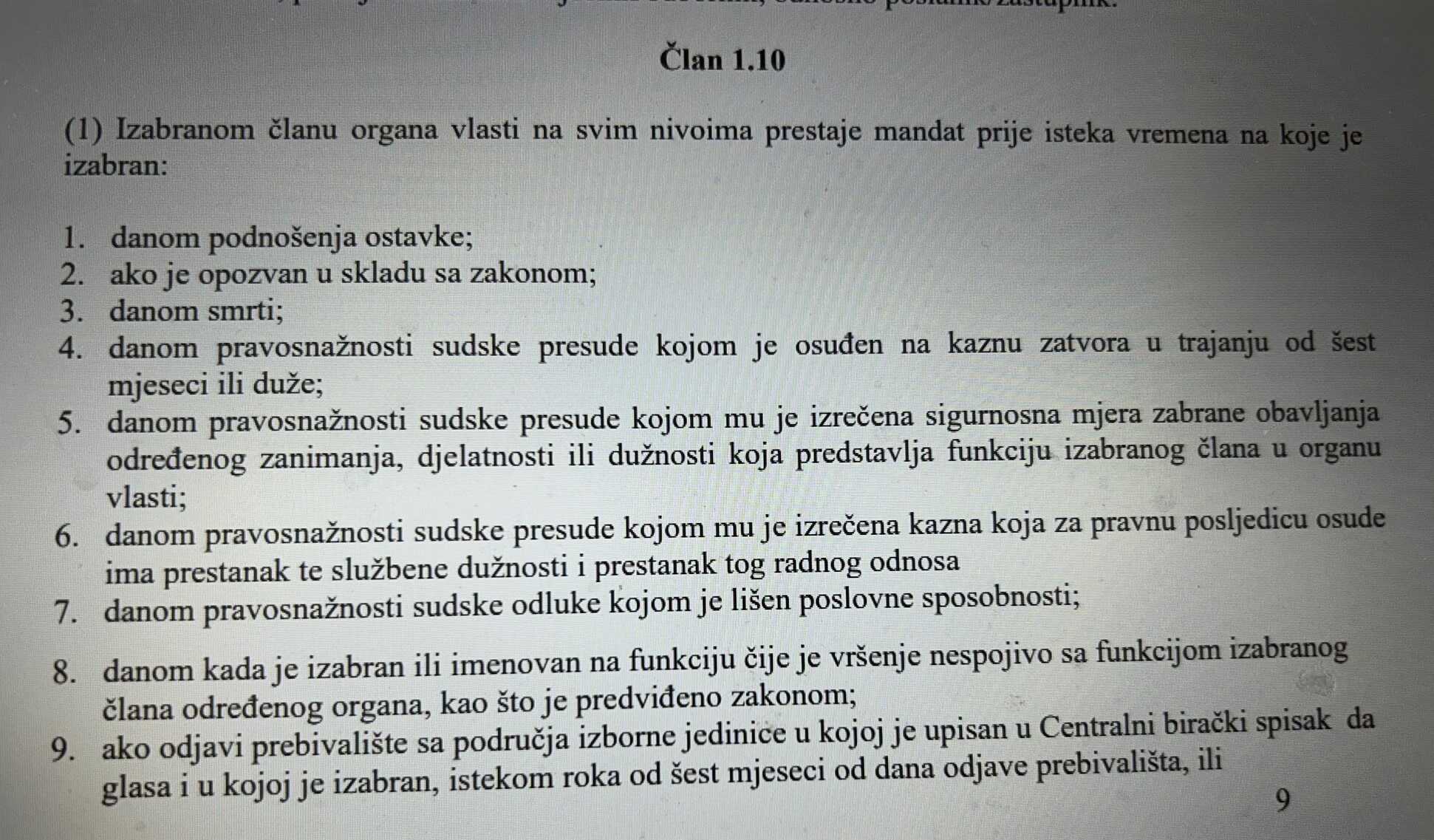 Član 1.10 Izbornog zakona predviđa da se Berilu, ako bude izabran za načelnika, mandat može oduzeti ako bude pravosnažno presuđen kaznom dužom od šest mjeeci zatvora.