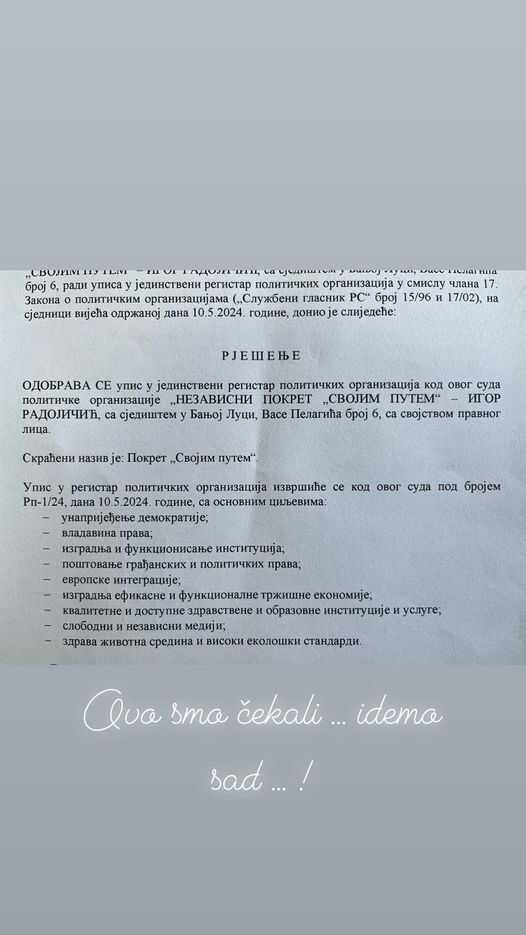 "Ovo smo čekali: Nezavisni pokret "Svojim putem" - Igor Radojičić zvanično je registriran kao politička organizacija!