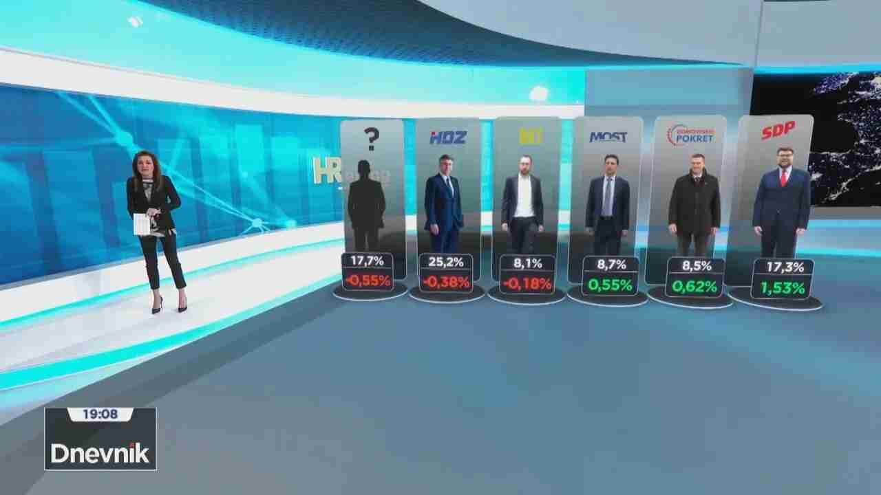 Takav iako mali, ali ipak pad sigurno ne zadovoljava stranke. Ponajprije HDZ (-0,38 posto) i Možemo (-0,18 posto), koje su jedine među onih pet koje prelaze izborni prag trenutno u minusu. HDZ od 0,38, a Možemo od 0,18 posto.