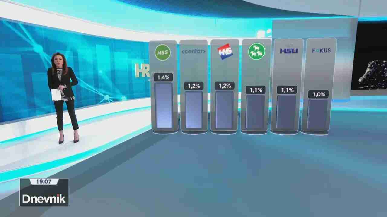 U grupi koja se kreće oko jedan posto su, redom: HSS (1,4 posto), izjednačeni Puljkov Centar (1,2 posto) i vladajući HNS (1,2 posto%), IDS (1,1 posto), HSU (1,1 posto) te Fokus (1 posto).