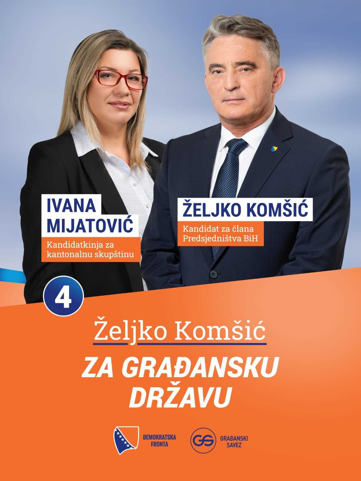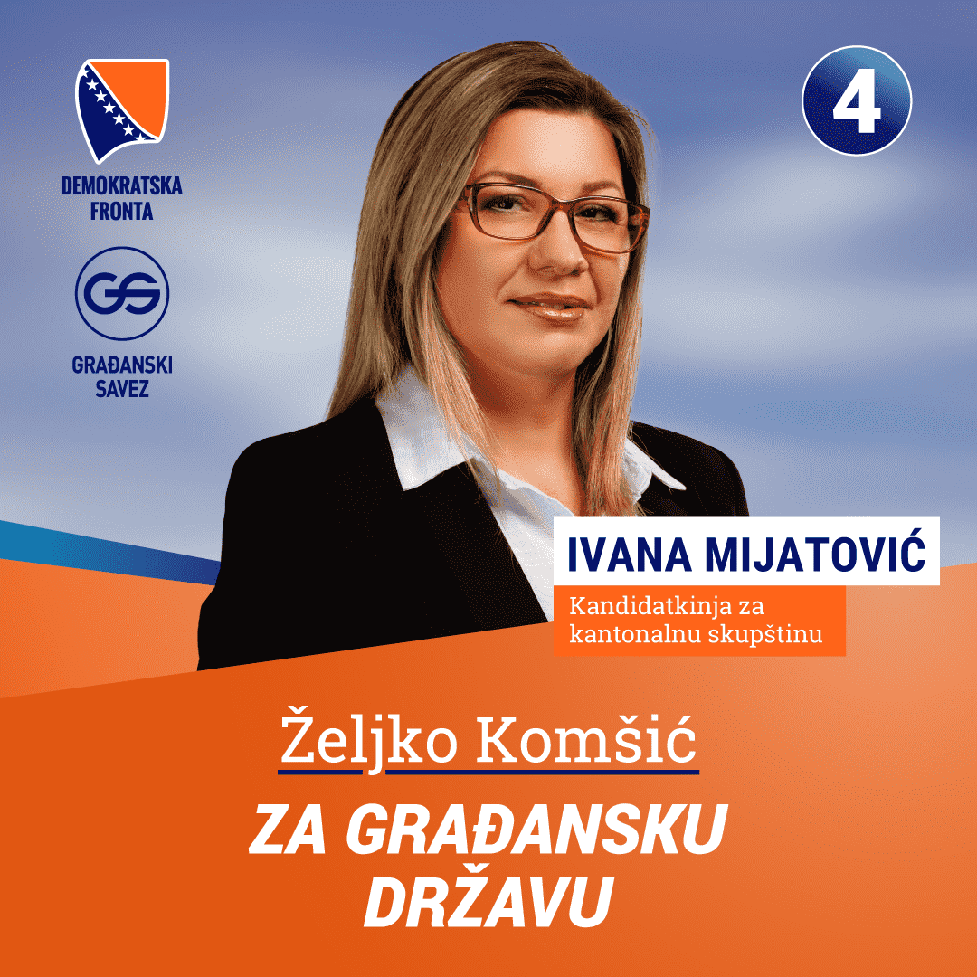 Čast mi je što sam broj 4 na Kantonalnoj listi za Skupštinu Tuzlanskog kantona. Na predstojeće izbore izlazimo kao koalicija ¨Željko Komšić za gradjansku državu DF /GS“.