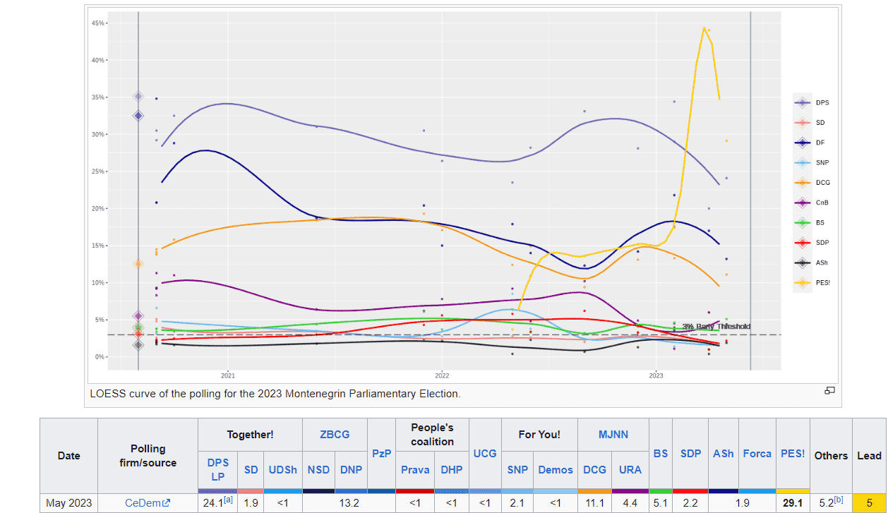 Istraživanje Centra za demokratiju (CeDem) iz prošlog mjeseca pokazuje trend pada popularnosti svih velikih partija - od PES-a do sada već ugašenog konglomerata prosrpskih stranaka okupljenih oko Demokratskog fronta.