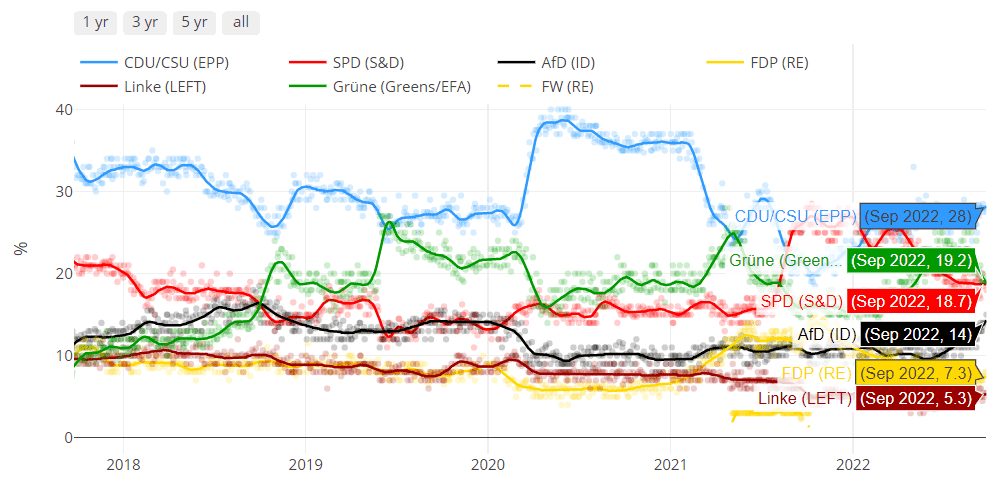 Ankete su Scholzove socijaldemokrate lijevog centra (SPD) postavile na između 31 i 33 posto podrške, što je sugeriralo da su na putu da dobiju manje od 37 posto, koliko su dobili na izborima 2017., ali da i dalje zadrže vlast, dijelom zahvaljujući popularnosti sadašnjeg premijera te savezne zemlje Stephana Weila.