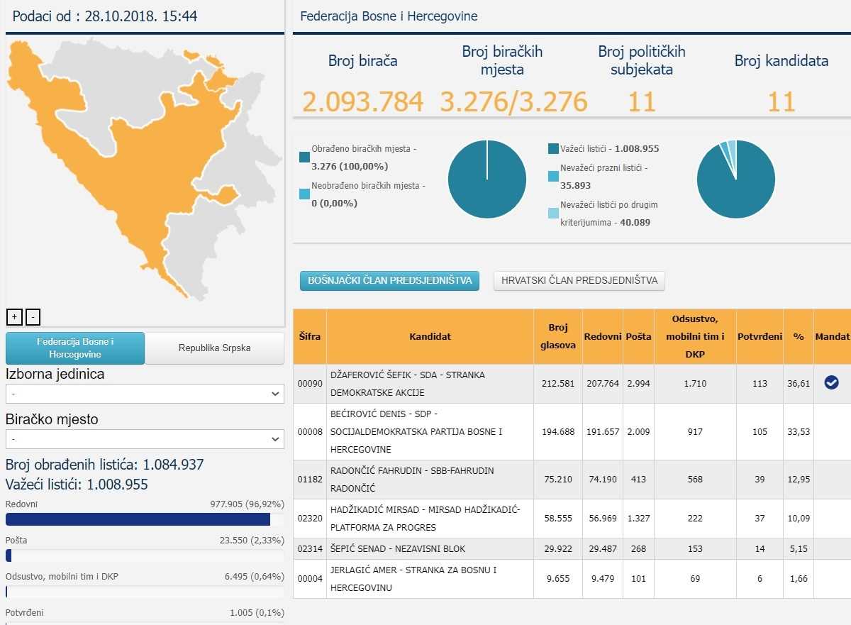 Na prošlim općim izborima, u utrci za člana Predsjedništva BiH iz reda bošnjačkog naroda, Džaferović je pobijedio osvojivši 212.581 glas.