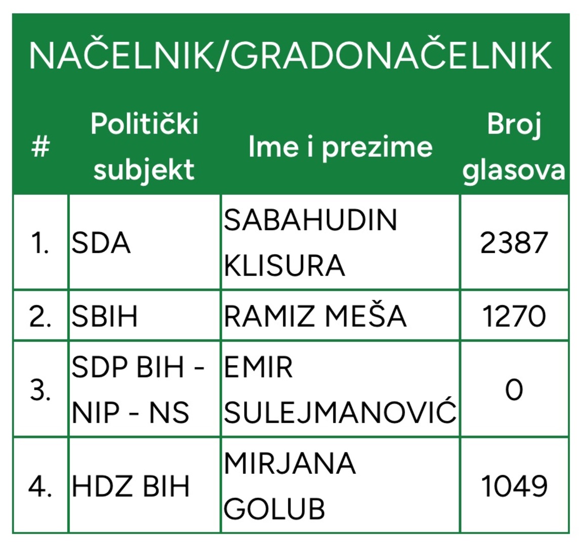 Od 5.337 birača, koliko ih je izašlo na izbore u Fojnici, najveću podršku dobio je aktuelni načelnik Sabahudin Klisura (SDA).