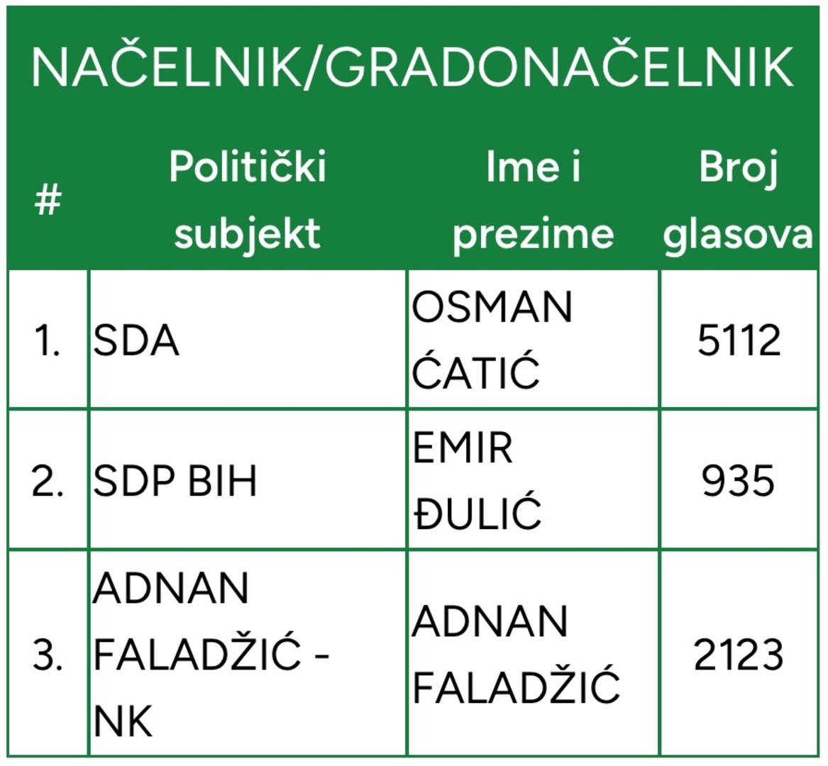 Aktuelni gradonačelnik Osman Ćatić ima 5.112 glasova.