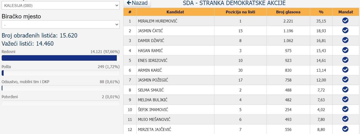 Zanimljiva je lista kandidata koji su ušli u Vijeće Kalesije.