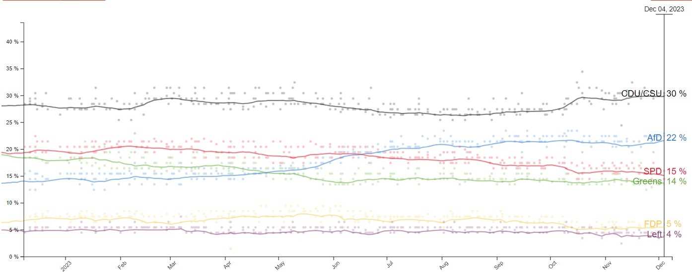 Ovaj medij navodi da je raspoloženje njemačkih birača 4. decembra bilo ovako:
