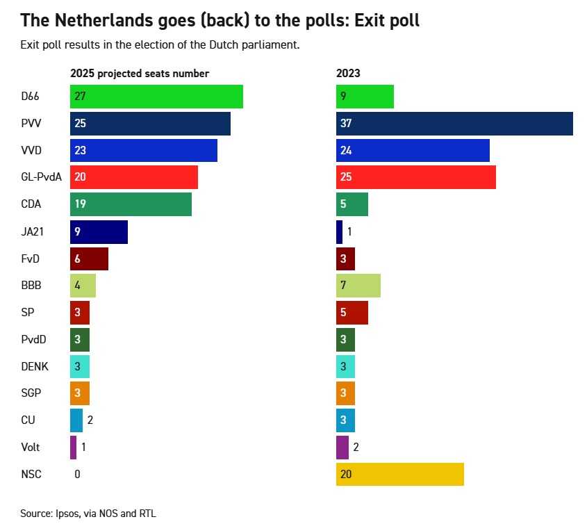 D66 je u posljednjim sedmicama kampanje ostvarila snažan uspon pod vodstvom 38-godišnjeg Jettena, bivšeg ministra za klimatske promjene. Stranka, poznata po proevropskoj i klimatski orijentisanoj platformi, pozicionirala se kao umjerena alternativa između desničarskog populizma i tradicionalnih konzervativaca.