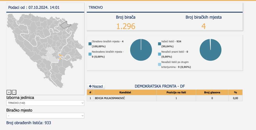 Među njima je i dosadašnja odbornica u Skupštini opštine Trnovo (RS) Behija Mulaosmanović (DF). Ona je na izborima 2020. osvojila 49 glasova što je bilo dovoljno da osvoji odbornički mandat. Četiri godine kasnije ili je odlučila da ni ona ne glasa za sebe ili je pokradena. To ćemo znati tek kada budu mogući prigovori Centralnoj izbornoj komisiji i zahtjevi za ponovno brojanje glasova.