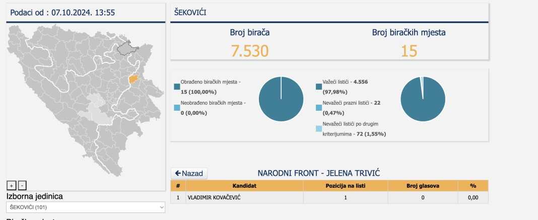 Vladimir Kovačević, kandidat Narodnog fronta za odbornika u Skupštini opštine Šekovići ostvario je rezultate koji su, u najmanju ruku čudni, jer je osvojio nula glasova.