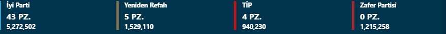 IYI, Dobra stranka koju predvodi Merak Aksener, osvojila je 43 mandata u parlamentu dobivši nešto više od 5,2 miliona glasova. Ova partija nevoljko je ušla u opozicioni šestočlani blok stranaka koje su se udružile protiv Erdogana.
