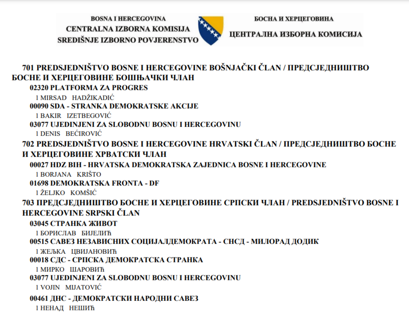 Osim što Šehovića nema na listi, ona je - kada je Predsjedništvo Bosne i Hercegovine u pitanju, vjerovatno najkraća u posljeratnoj historiji države.