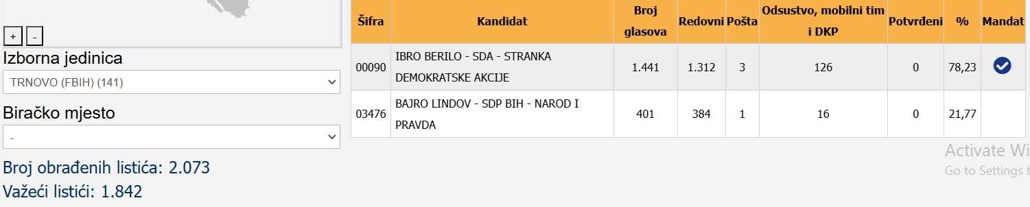 Načelnik Općine Trnovo Ibro Berilo prihvatio je novi mandat na ovoj poziciji, potvrđeno je za Faktor iz Centralne izborne komisije Bosne i Hercegovine (CiK BiH).