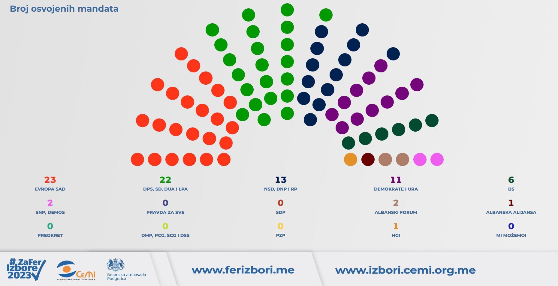 Prema projekciji Centra za monitorin izbora (CEMI), ovako bi trebao izgledati budući sastav Skupštine Crne Gore.